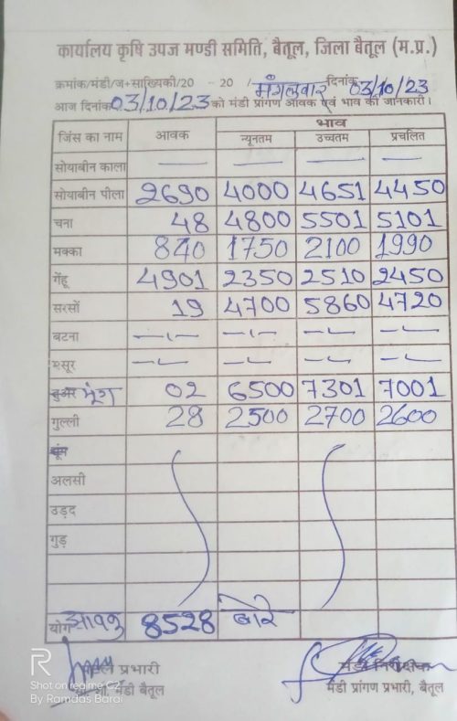 Betul Mandi Bhav 3 October 2023: Betul Mandi Bhav of 3 October 2023, 8 thousand 528 sacks remained incoming.