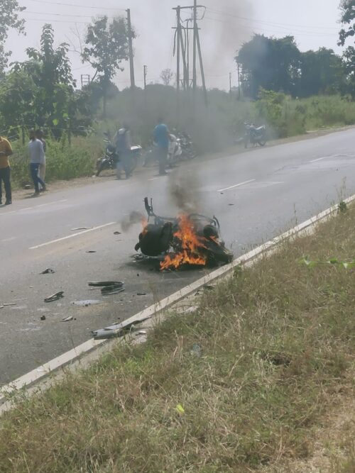 Betul Road Accident: Two road accidents on the highway, one dead, four injured, bike caught fire after the accident