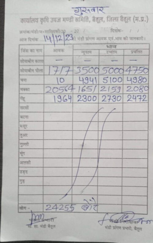 Betul Mandi Bhav 15 December 2023: Betul Mandi Bhav today 15 December 2023, arrival of produce was 24 thousand.
