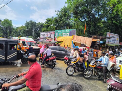 Betul Traffic Jam: बैतूल शहर में आए दिनों जाम की स्थिति बनी रहती है। यातायात पुलिस द्वारा ट्राफिक व्यवस्था पर गंभीरता से ध्यान नहीं दिया जा रहा। सोमवार को दोपहर 12.30 बजे कॉलेज चौक (परशुराम चौक) पर लंबा जाम लग गया। इस जाम में 3 एंबुलेंस गाड़ियां फंस गई थीं। कड़ी मशक्कत के बाद एंबुलेंस गाड़ियों को जाम से बाहर निकाला। चौहारे की चारों तरफ से आने वाली सड़कों पर वाहनों की लंबी कतारें लग गई। मौके से ट्राफिक पुलिस नदारत रहीं। ड्यूटी से घर लौट रहे कुछ पुलिसकर्मियों ने मोर्चा संभालते हुए जाम को सुचारू किया।