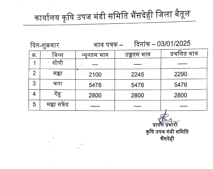 Betul Mandi Bhav 03January 2025 : Betul and Bhainsdehi Mandi Bhav today 03 January 2025, arrival of produce was 27 thousand sacks