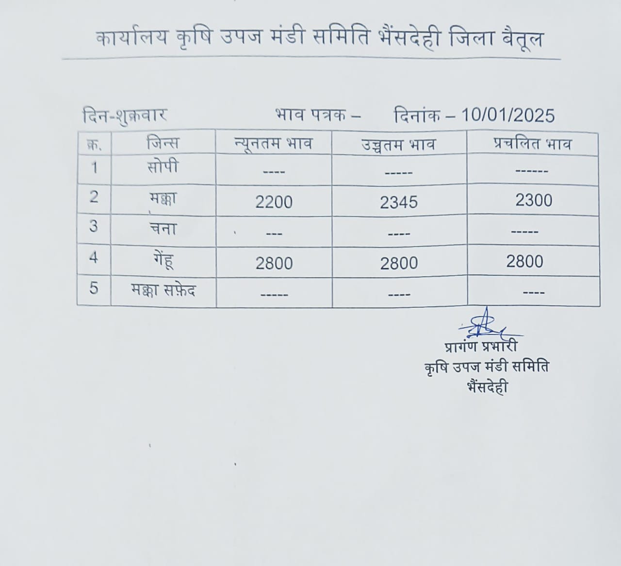 भैंसदेही मंडी भाव इस प्रकार है..