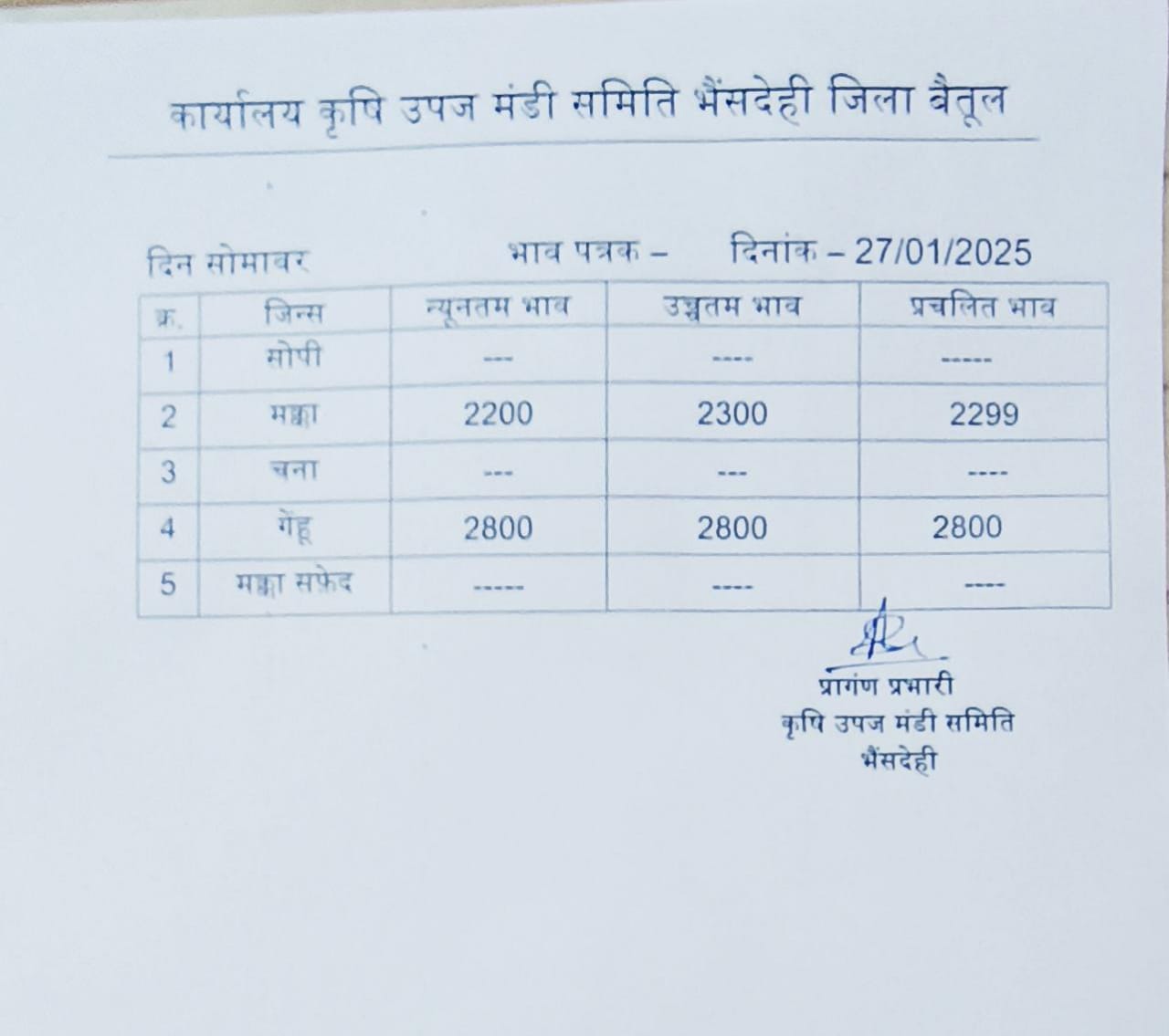 भैंसदेही मंडी भाव इस प्रकार है..