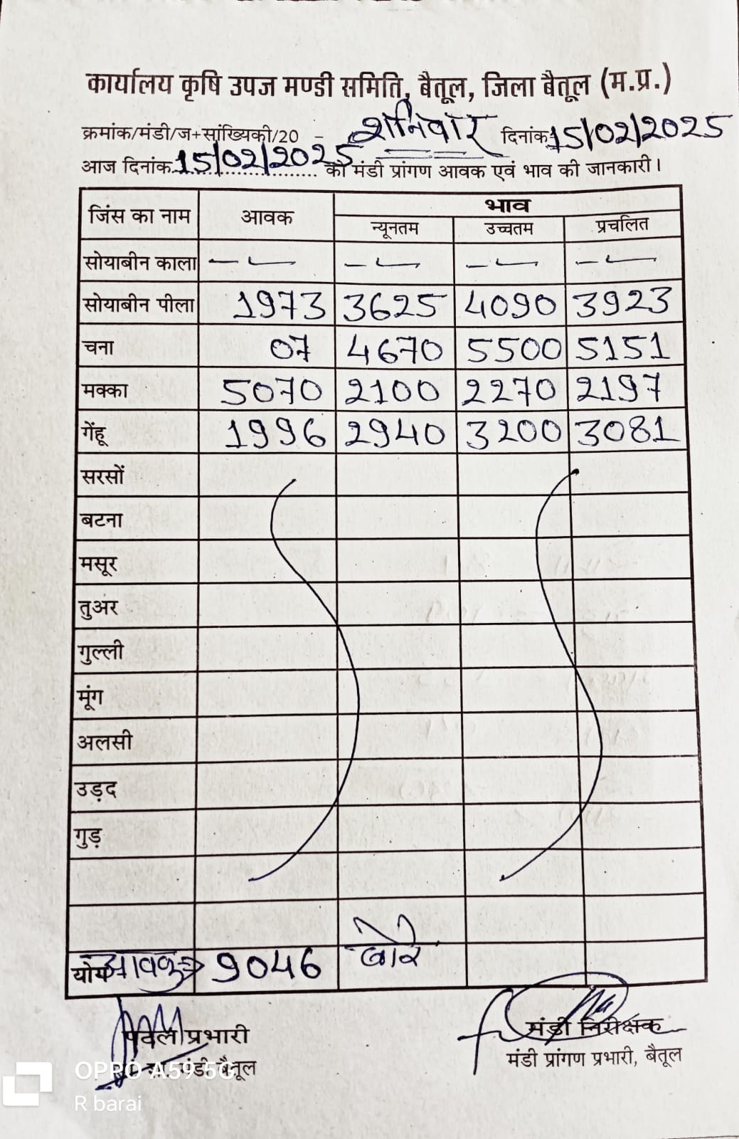 Betul Mandi Bhav 15 February 2025 : आज 15 फरवरी 2025 के बैतूल मंडी भाव, 9 हजार बोरे रही उपज की आवक