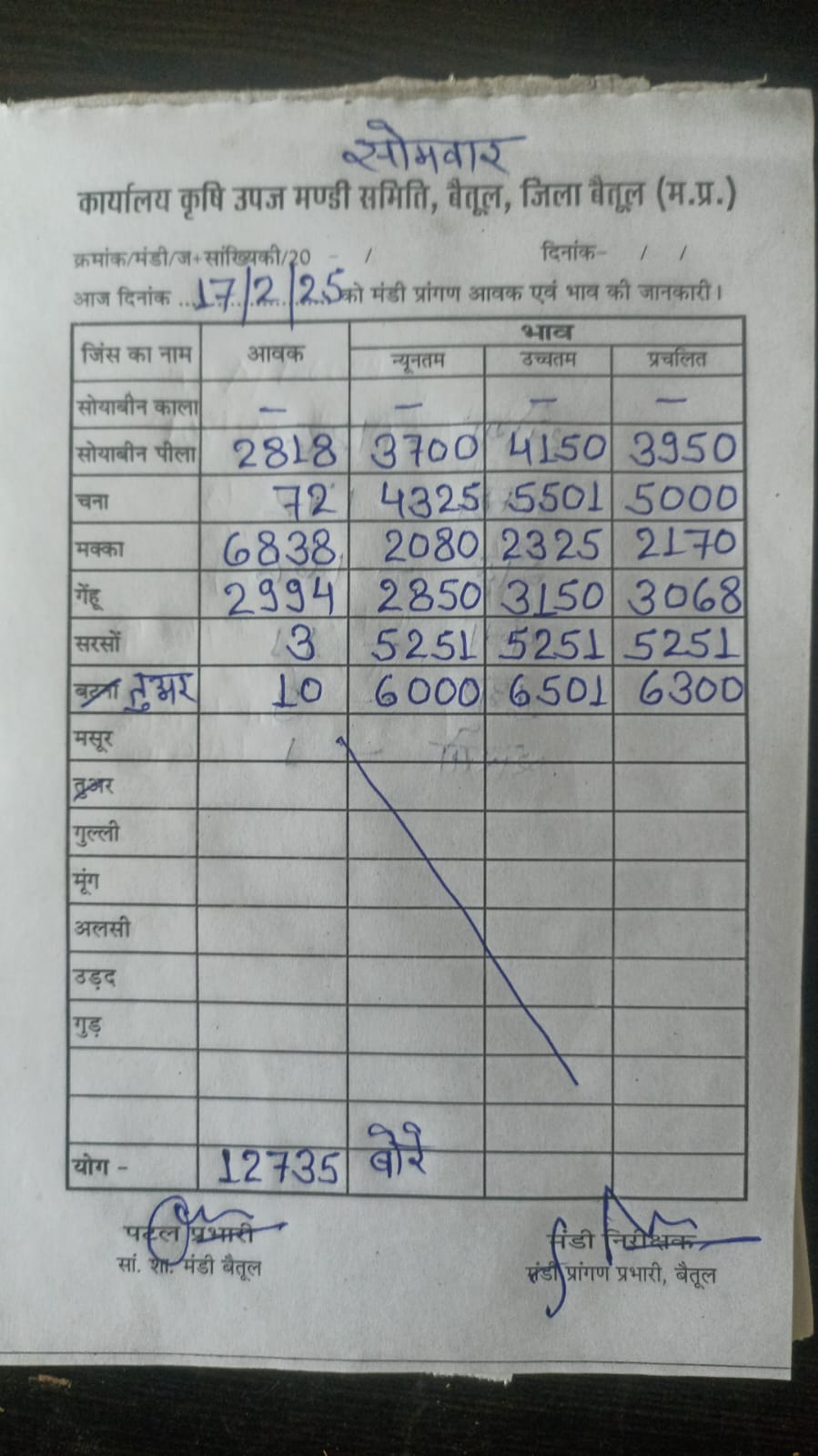 Betul Mandi Bhav 17 February 2025 : Betul Mandi Bhav today 17 February 2024, know the prices of soybean, wheat and maize