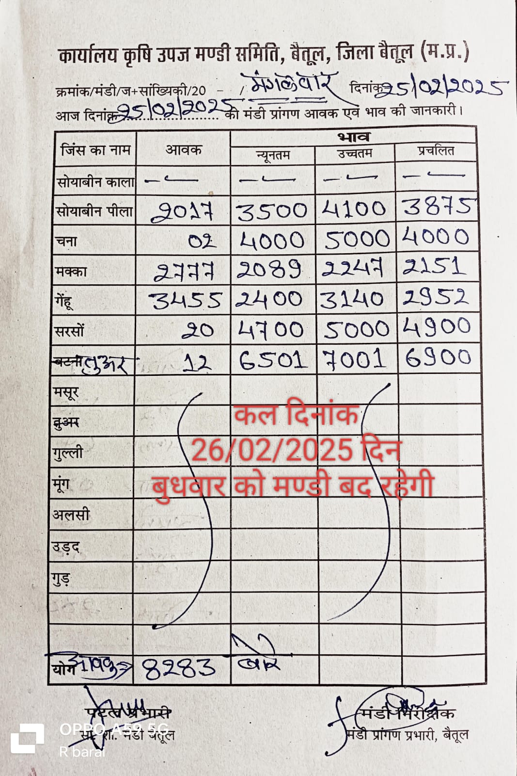 Betul Mandi Bhav 25 February 2025: Betul and Bhainsdehi Mandi Bhav today 25 February 2025, holiday on 26 February