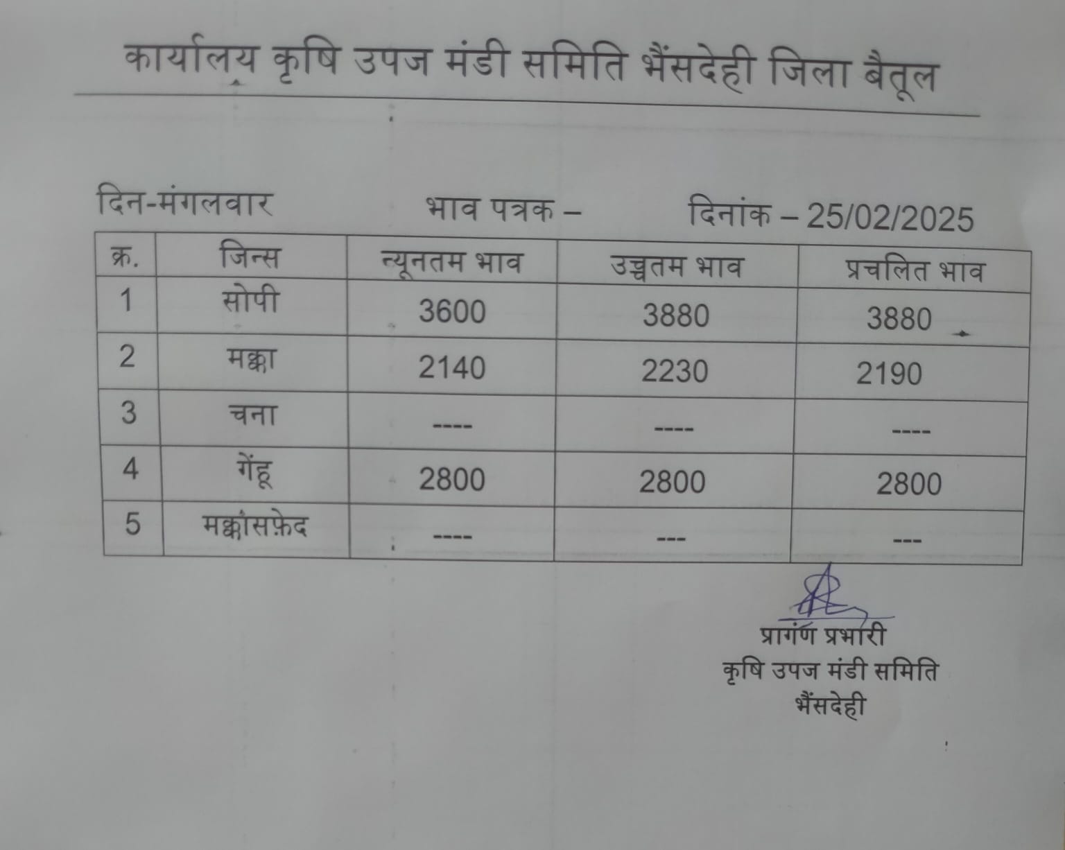 भैंसदेही मंडी भाव इस प्रकार है..