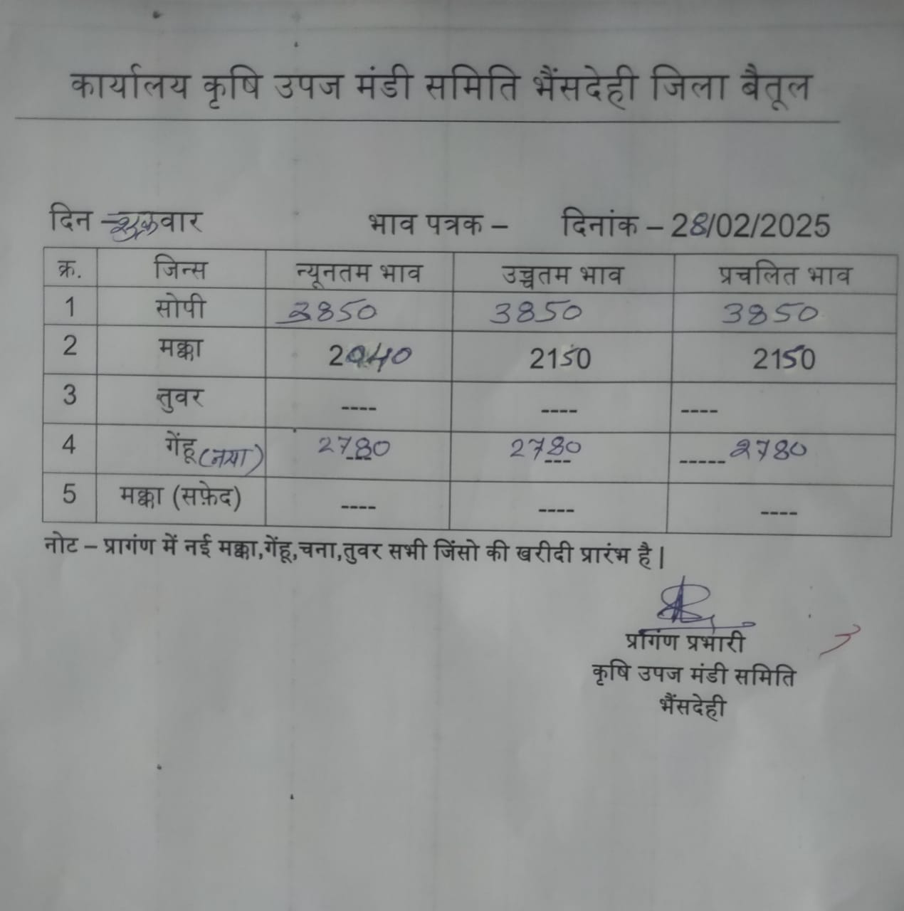 भैंसदेही मंडी भाव इस प्रकार है..