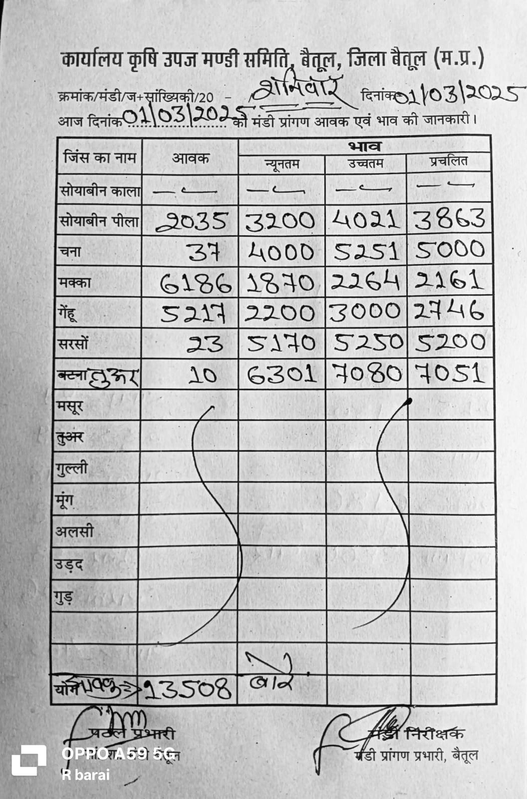 Betul Mandi Bhav 01 March 2025  : आज 1 मार्च 2025 के बैतूल मंडी भाव, धड़ाम से नीचे गिरे गेंहू के दाम