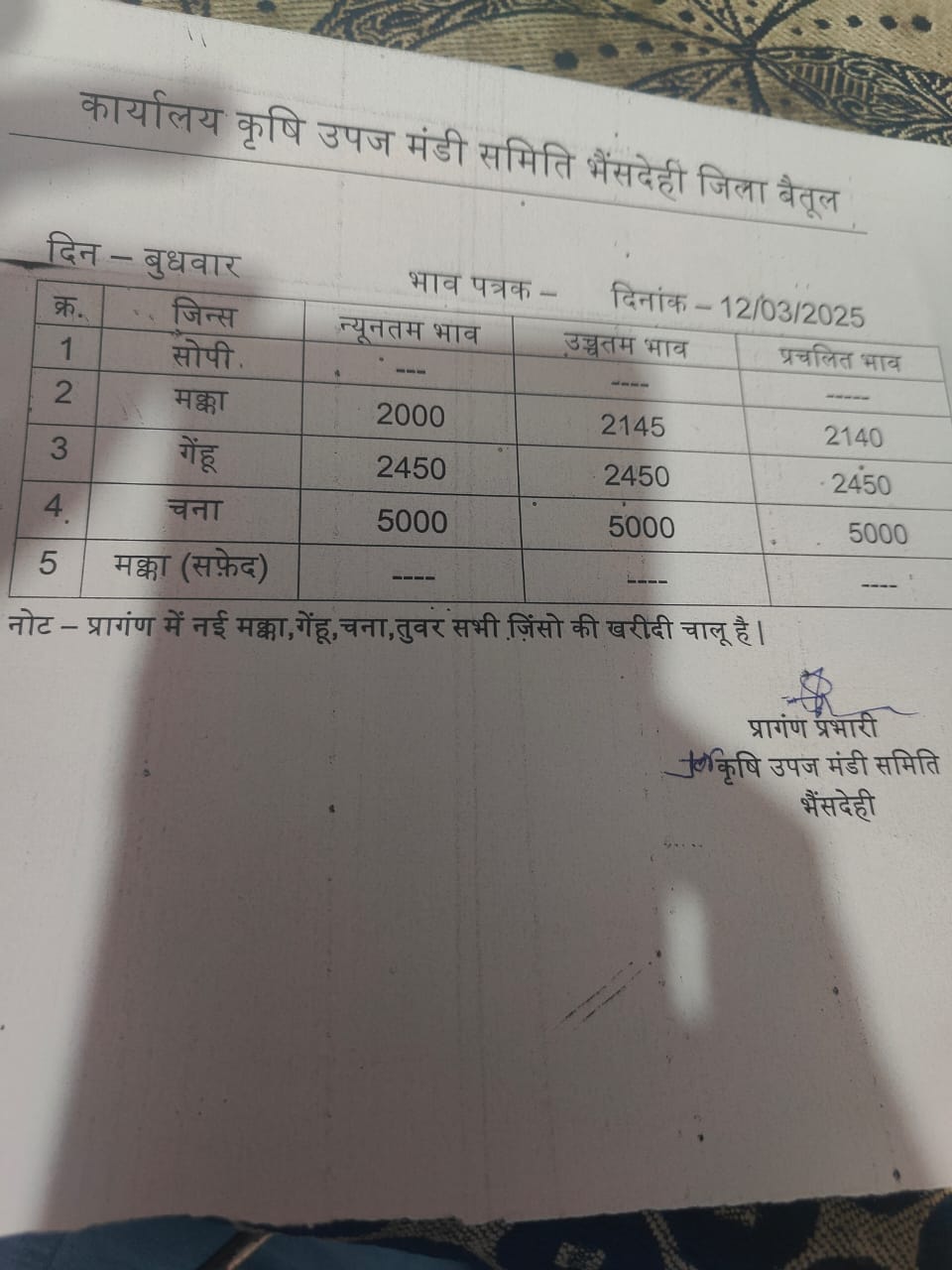 भैंसदेही मंडी भाव इस प्रकार है..