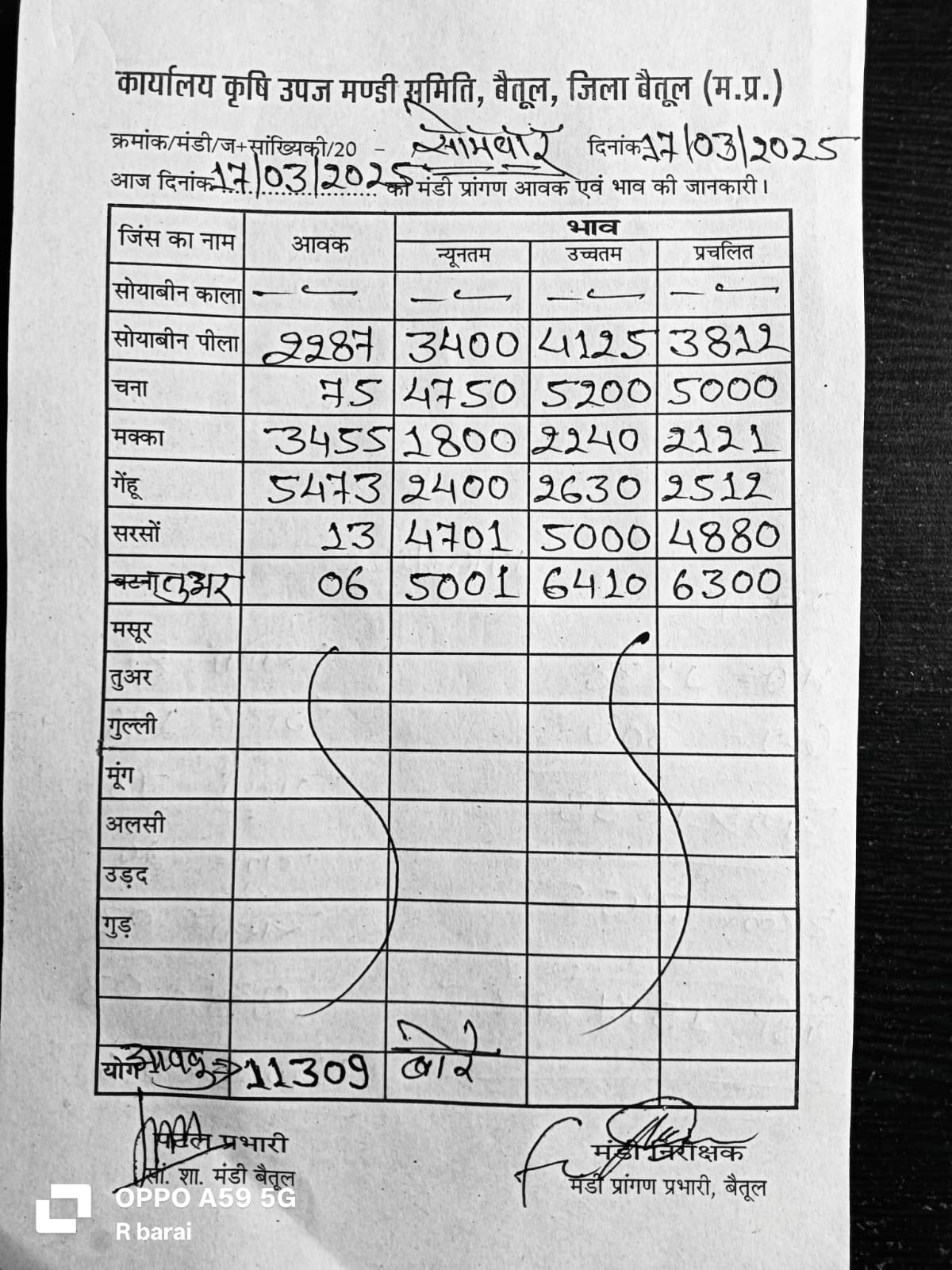 भैंसदेही मंडी भाव इस प्रकार है..