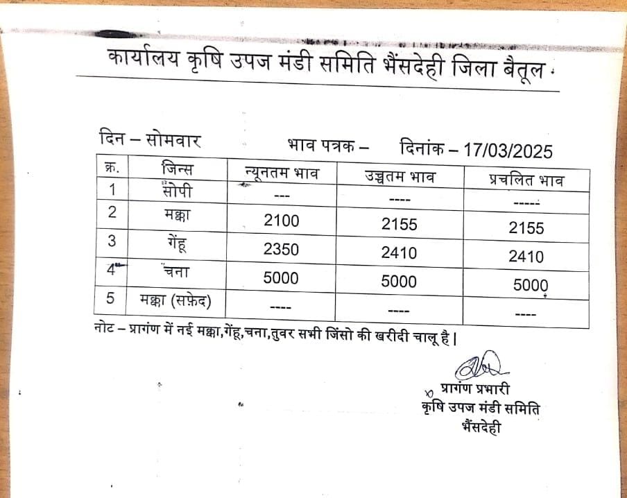 Betul Mandi Bhav 17 March 2025 : आज 17 मार्च 2025 के बैतूल और भैंसदेही मंडी भाव, गेंहू के दामों में आई गिरावट