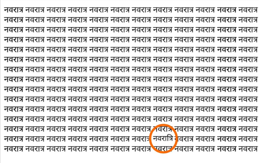 पहली नजर में आप इस तस्वीर को देखकर कंफ्यूज हो जाएंगे, लेकिन इस तस्वीर में नवरात्र के बीच नवरात्री शब्द ढूंढना इतना मुश्किल नहीं है। आप अगर 6 सेकंड में उत्तर ढूंढ लेते हैं तो आप इंटेलीजेंट माने जाएंगे। लेकिन अगर आप 6 सेकंड में उत्तर नहीं ढूंढ पाते हैं तो परेशान होने की जरूरत नहीं है। उत्तर ढूंढने में हम आपकी मदद करेंगे।