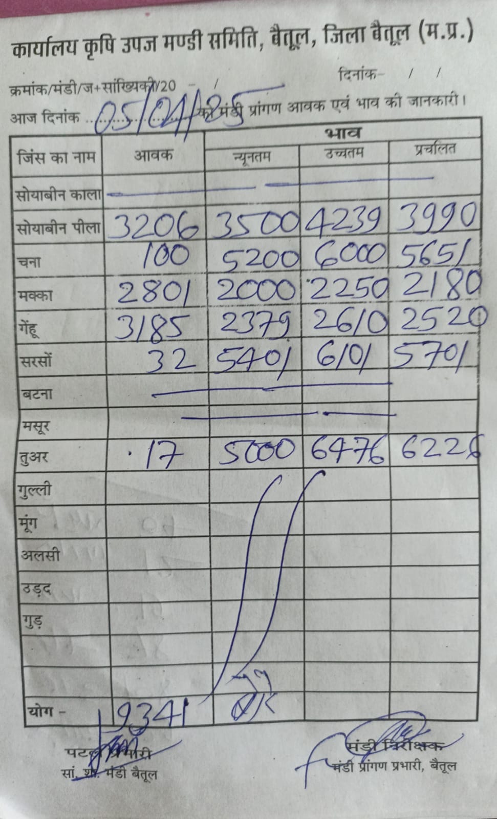 Betul Mandi Bhav 05 April 2025  : आज 05 अप्रैल 2025 के बैतूल मंडी भाव, सोयाबीन के दाम में उतार चढ़ाव जारी