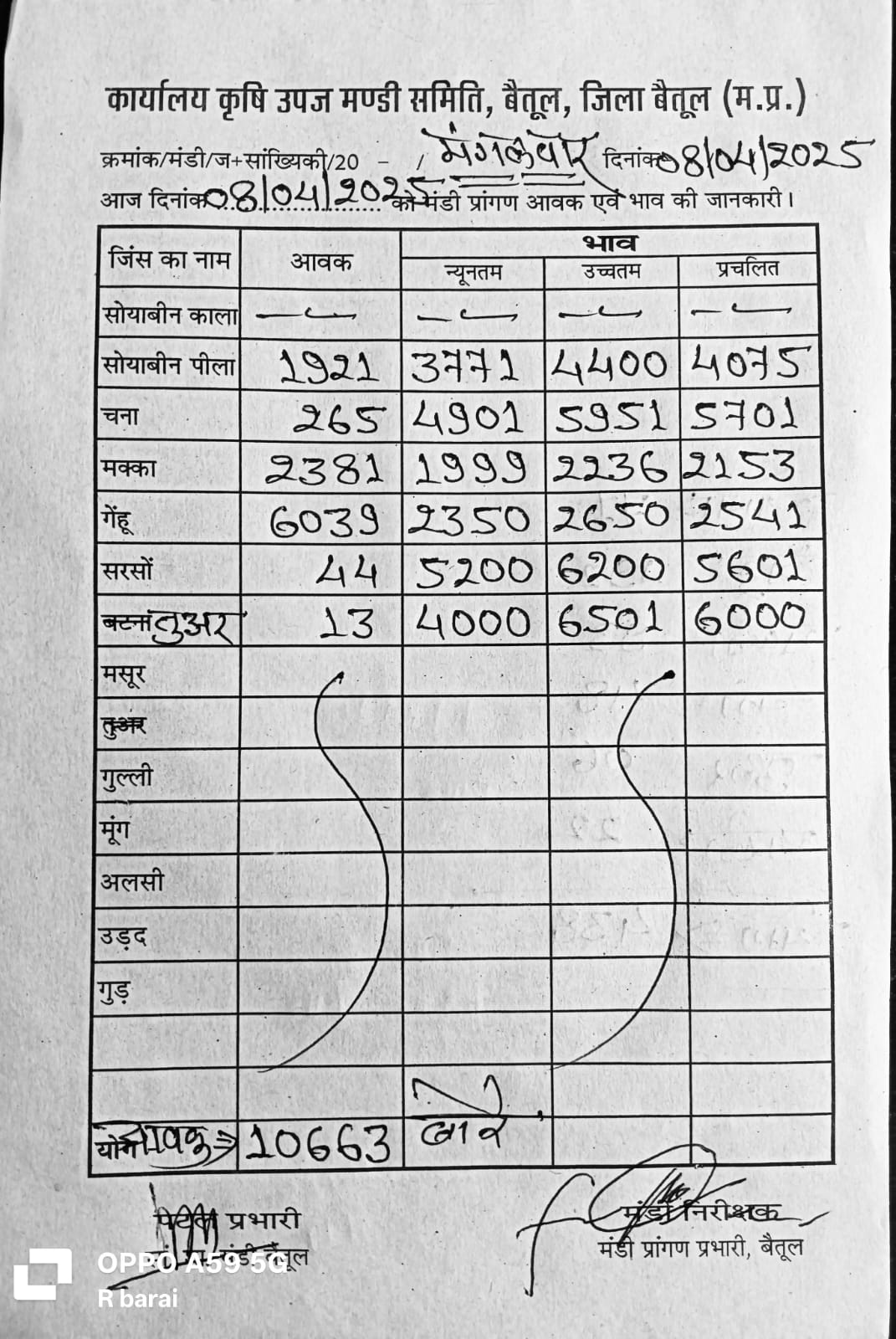 भैंसदेही मंडी भाव इस प्रकार है..