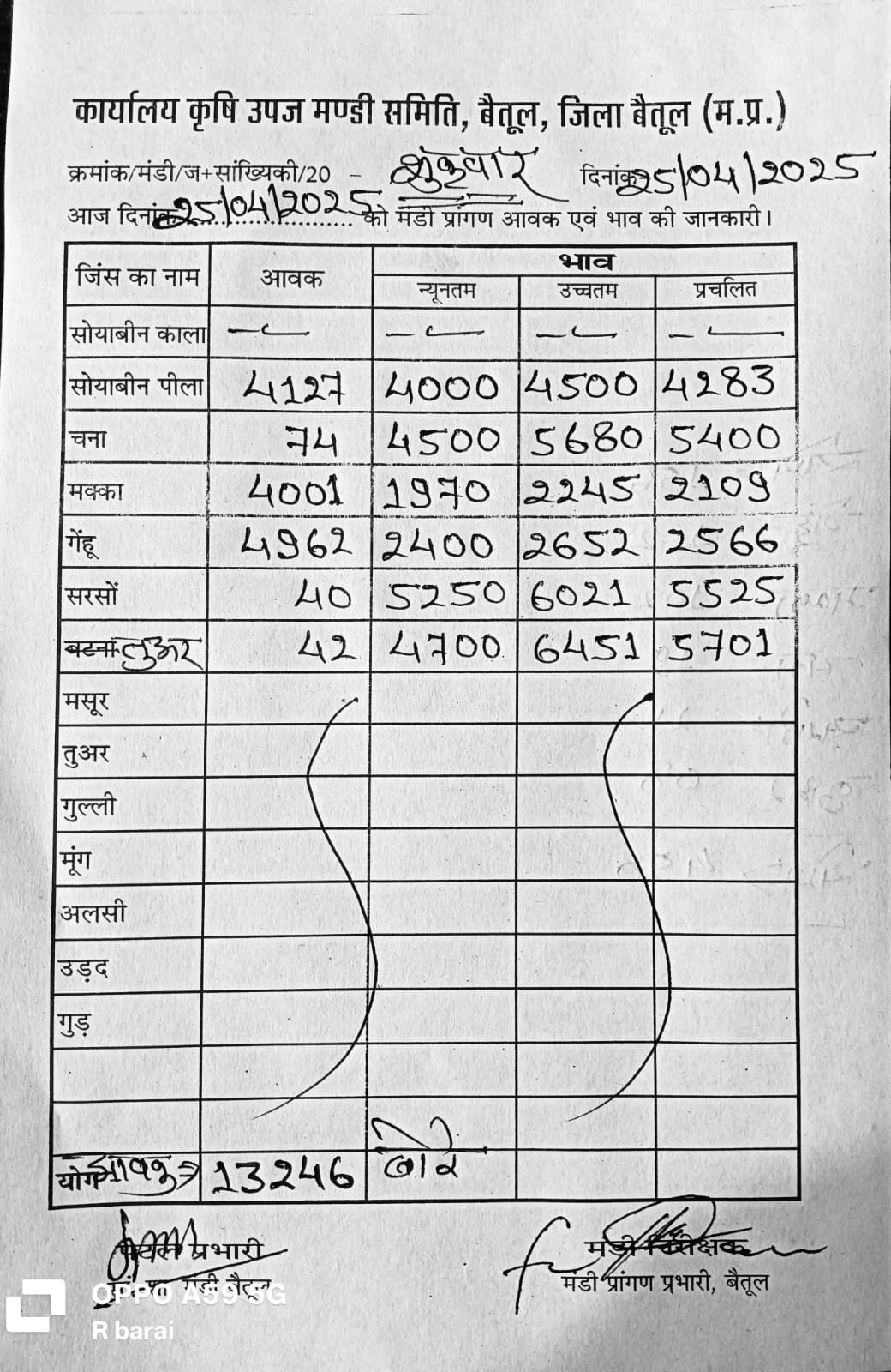 Betul Mandi Bhav 25 April 2025  : आज 25 मार्च 2025 के बैतूल मंडी भाव, 13 हजार बोरे रही उपज की आवक