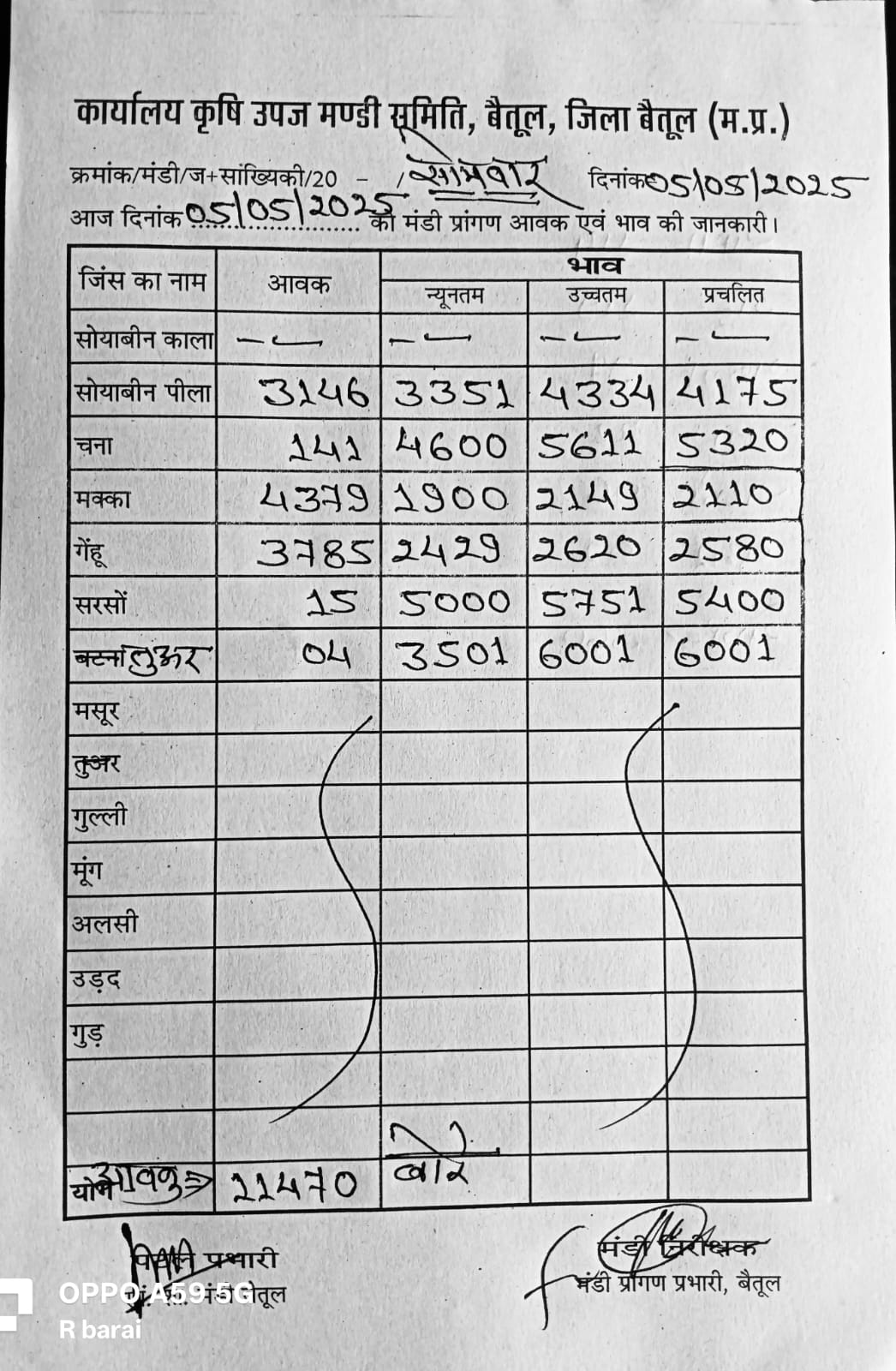 भैंसदेही मंडी भाव इस प्रकार है..