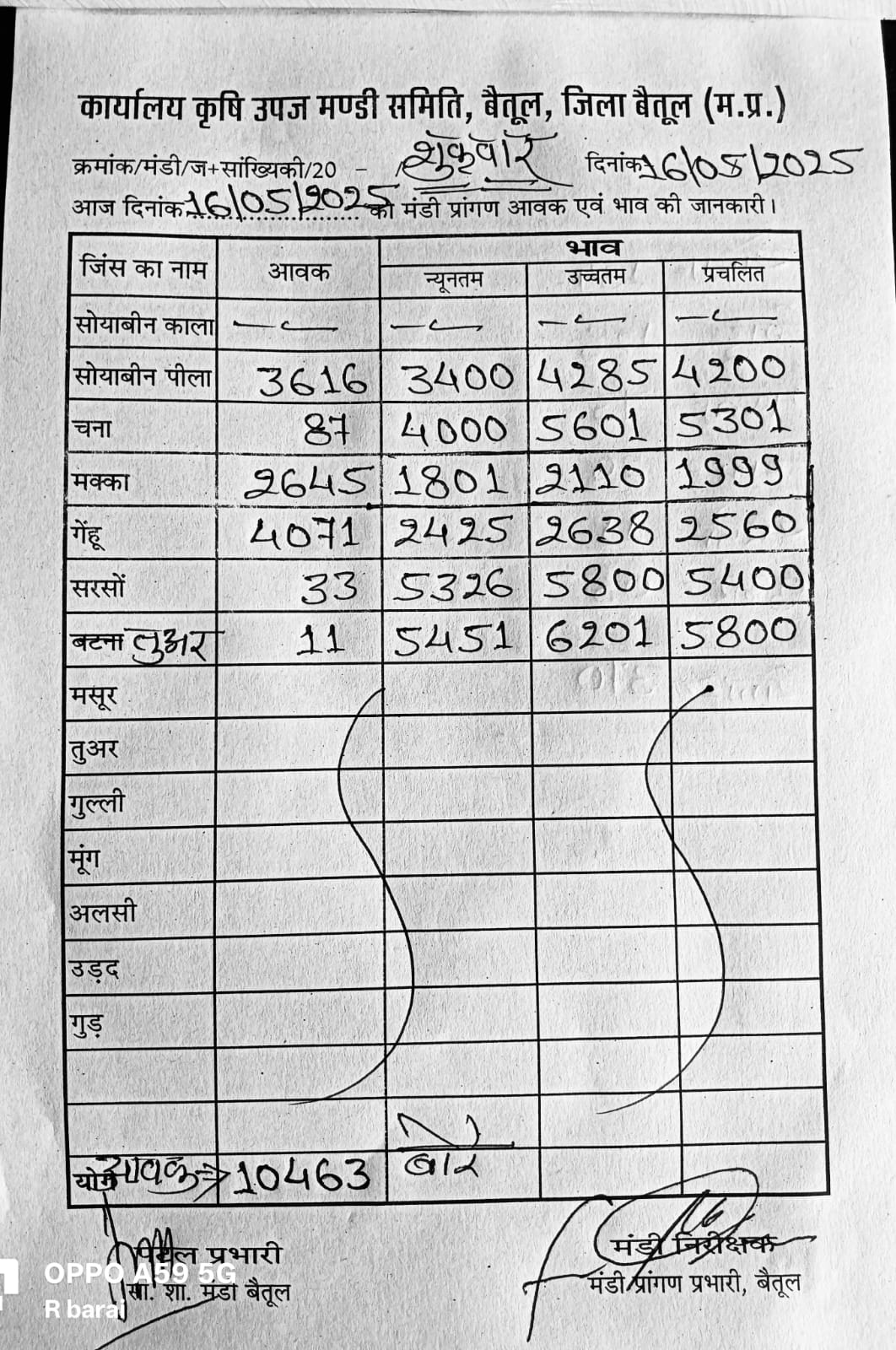 Betul Mandi Bhav 16 May