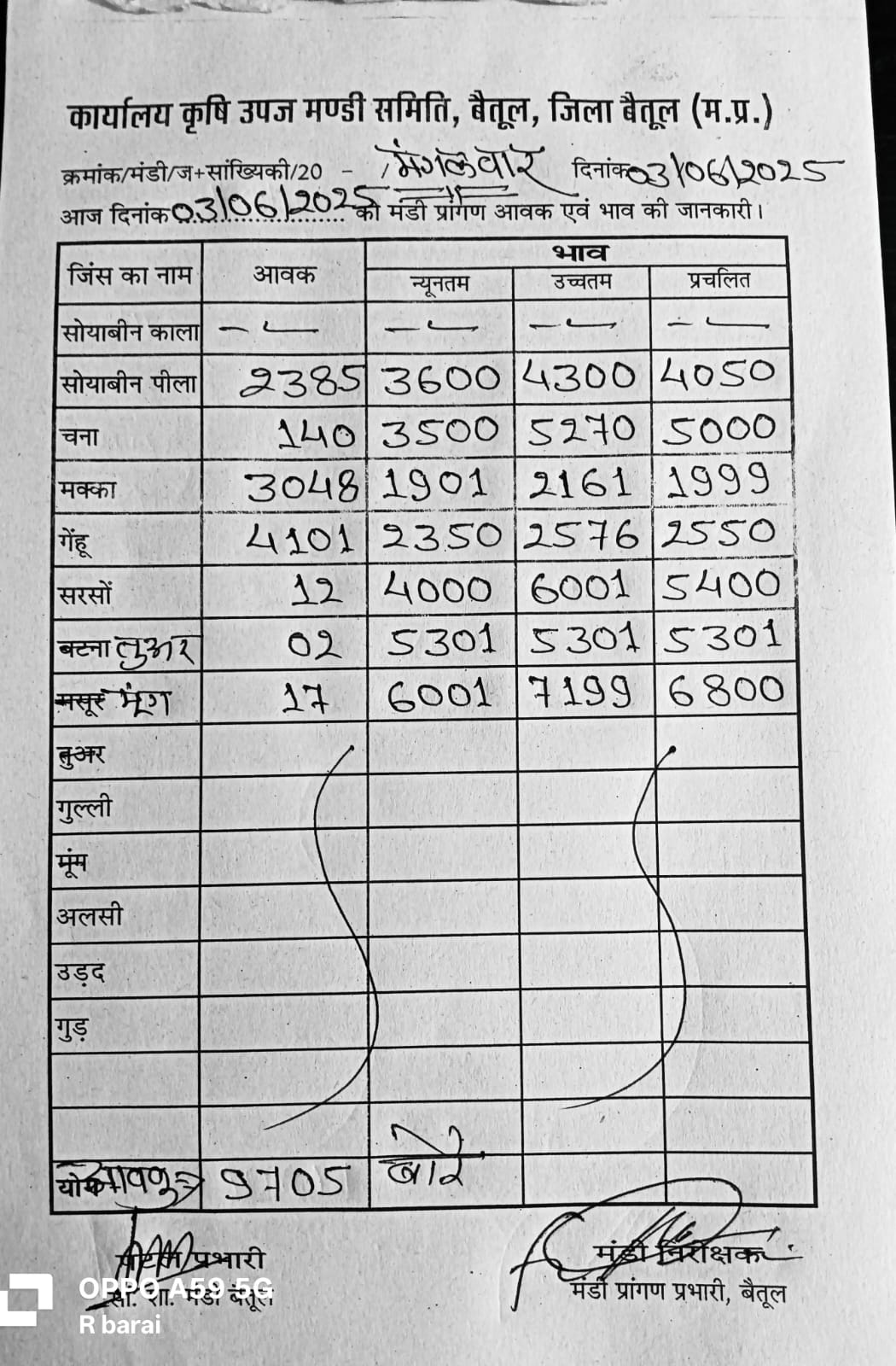 Betul Mandi Bhav 03 Jun 2025 : आज 03 जून के बैतूल मंडी भाव, 9 हजार बोरे रही उपज की आवक