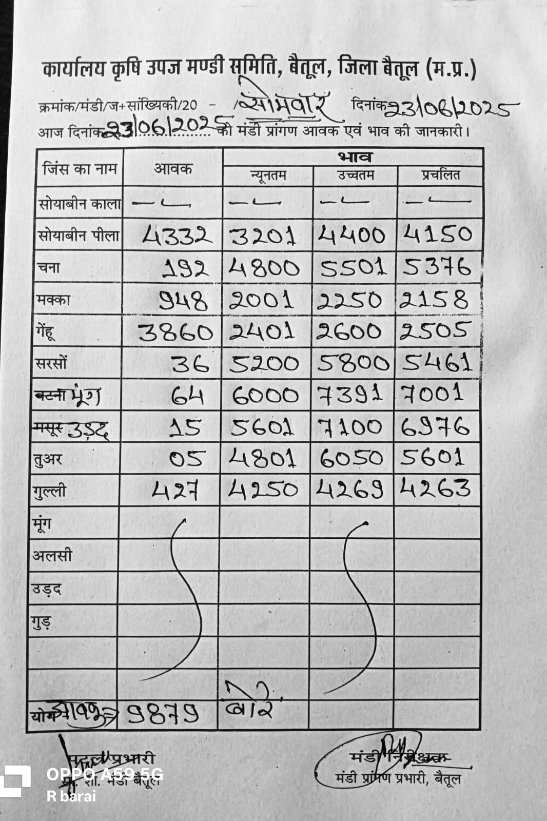Betul Mandi Bhav 23 Jun 2025 : आज 23 जून 2025 के बैतूल मंडी भाव, उड़द के दामों में हुई बढ़ोतरी