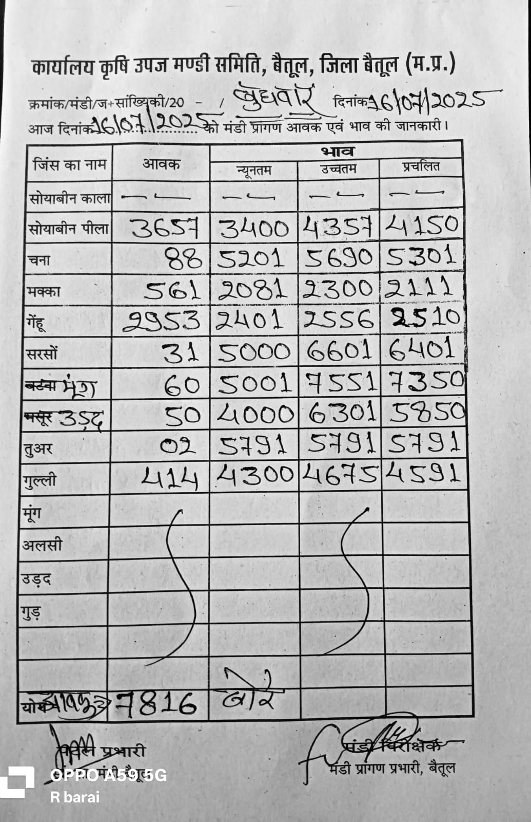 Betul Mandi Bhav 16 July 2025 : आज 16 जुलाई 2025 के बैतूल मंडी भाव, उपज के आवक में आई कमी