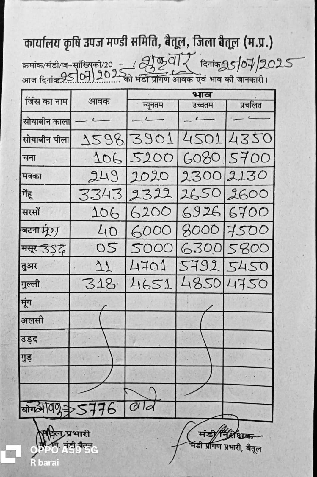 Betul Mandi Bhav 25 July  2025  : आज 25 जुलाई 2025 के बैतूल मंडी भाव, मूंग और उड़द के दामों में बढ़ोतरी