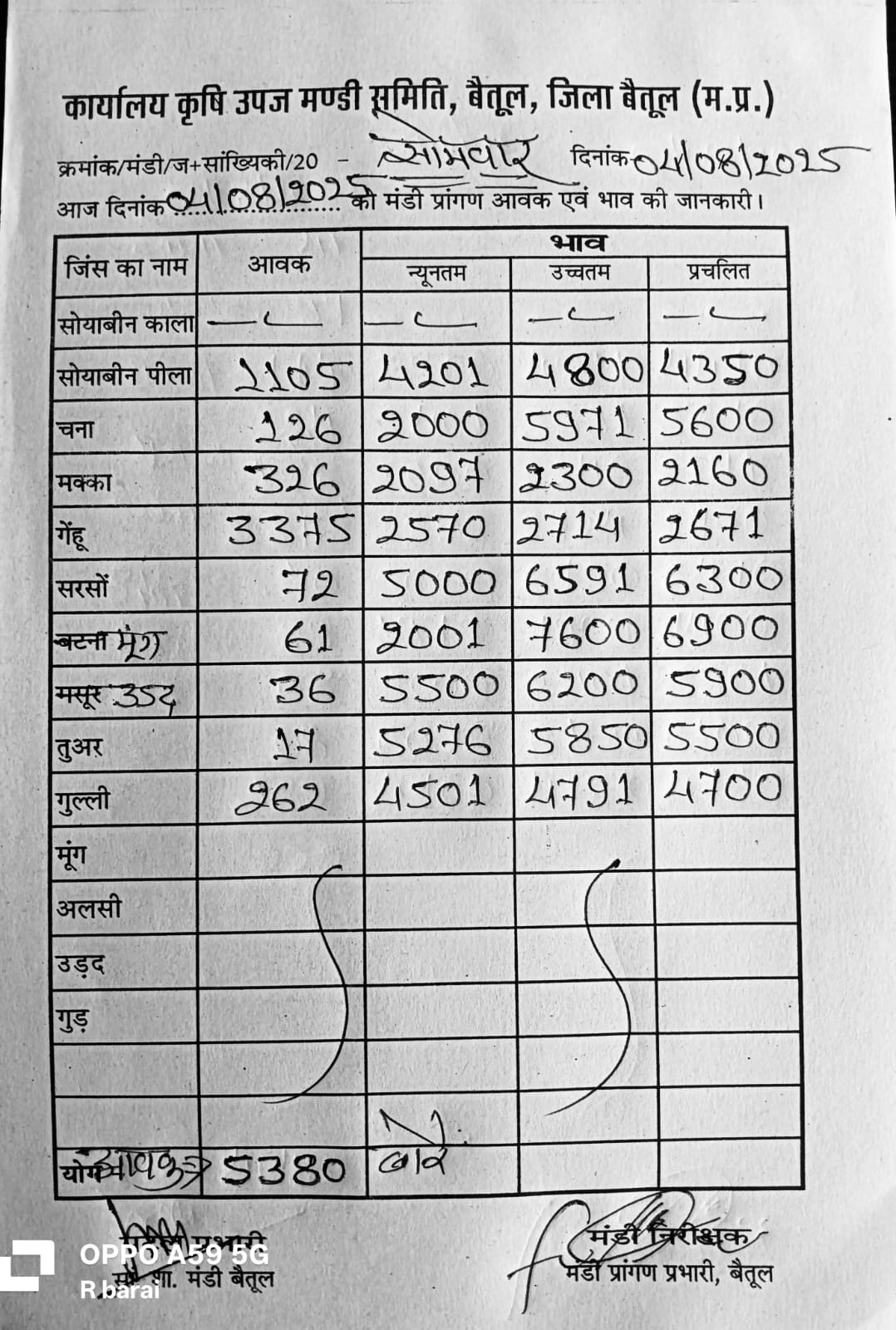 Betul Mandi Bhav 04 August  2025 : आज 04 अगस्त 2025 के बैतूल मंडी भाव, उपज की आवक हुई कम