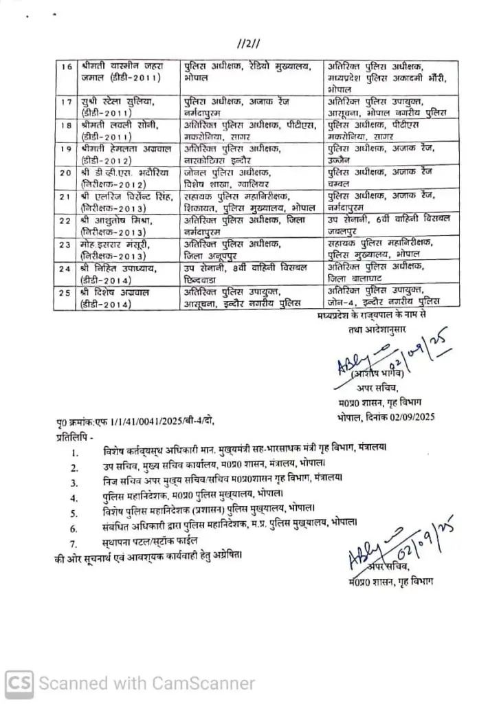 MP Police Transfer List : मध्यप्रदेश में फेरबदल का सिलसिला जारी, पुलिस विभाग में 25 अधिकारी स्थानांतरित