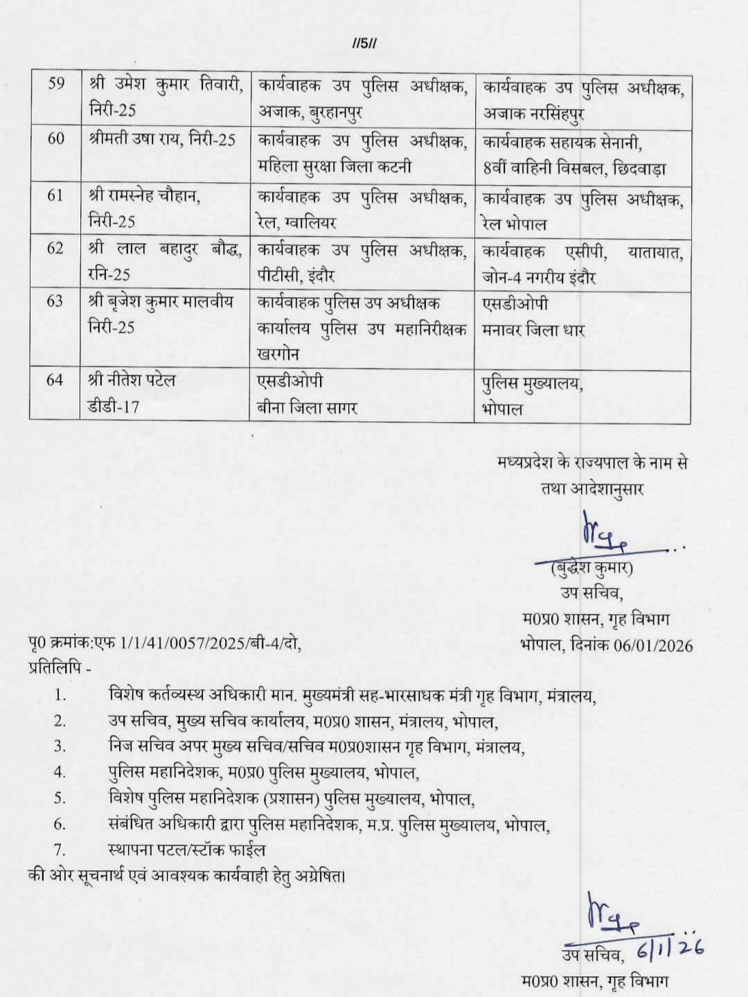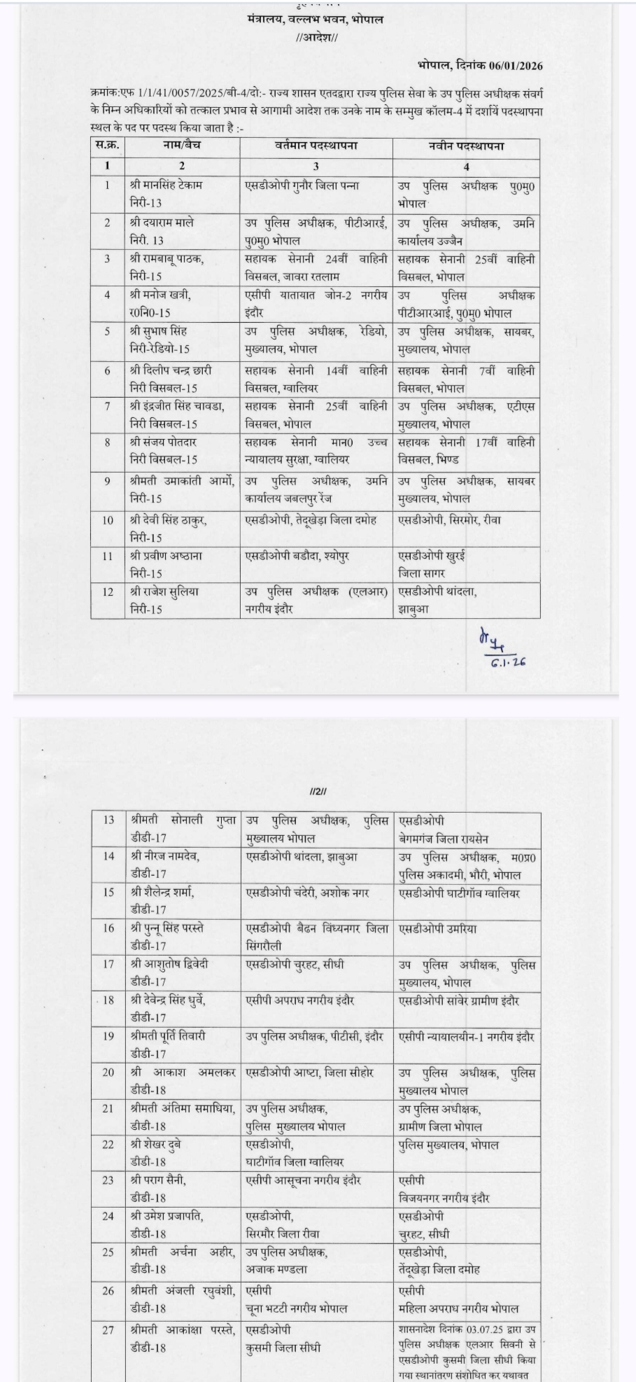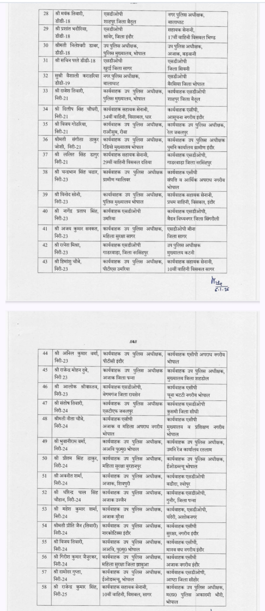 MP DSP Transfer List: Major reshuffle in MP Police Department, 64 DSPs transferred, see list