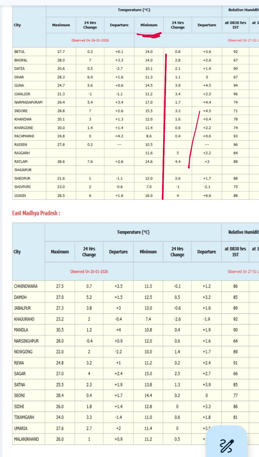 MP Weather Update : पश्चिमी विक्षोभ के कारण मध्य प्रदेश में मौसम बदल गया है। अगले 24 घंटे के दौरान प्रदेश के 28 जिलों में के साथ बारिश होने की संभावना जताई है। अगले 2 से 3 दिन तक मौसम ऐसे ही बना रहेगा। कुछ जिलों में कोहरा छाया रहेगा। बादलों के कारण ठंड का असर कम हुआ है। 10 से 12 किमी प्रति घंटे की रफ्तार से हवाएं चल सकती है। कुछ जिलों में बादल छाए रहेंगे।
